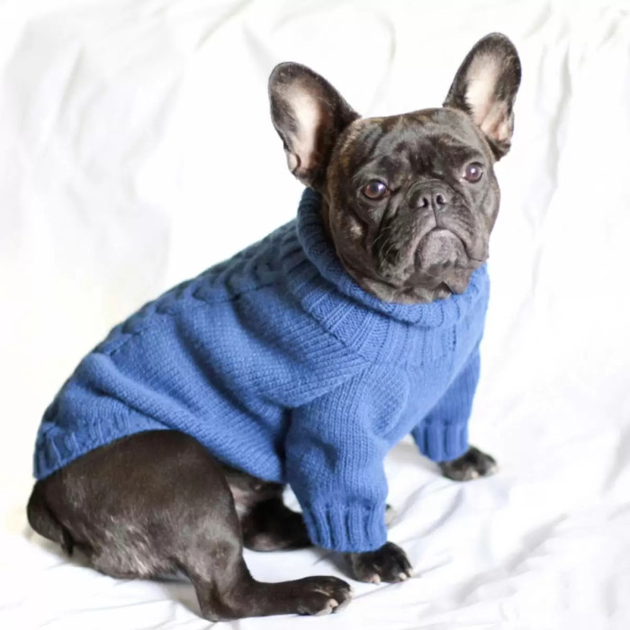 Светр в'язаний Косичка синiй Y-230