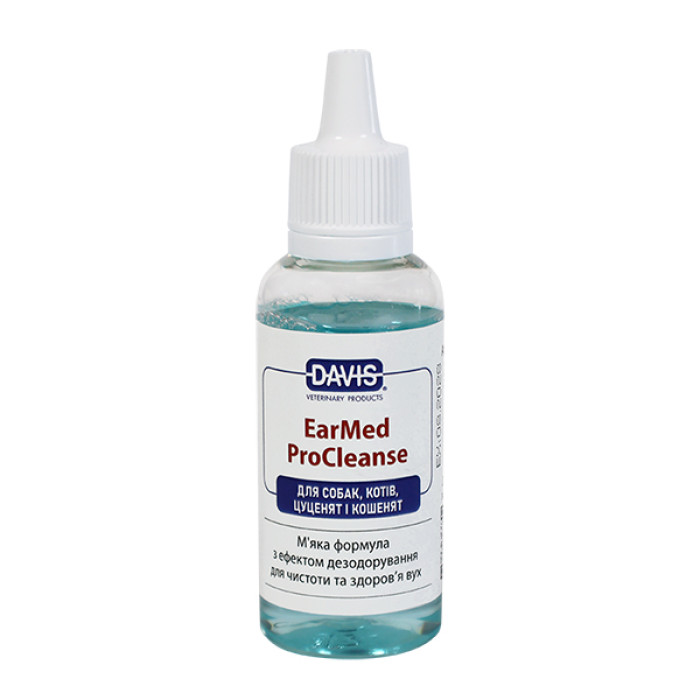 Davis EarMed ProCleanse — це м’який безспиртовий розчин, створений для регулярного догляду за вухами собак і котів. На відміну від агресивних засобів, ProCleanse діє надзвичайно дбайливо, тому ідеально підходить для улюбленців із чутливою шкірою, кошенят та цуценят. Він не викликає печії та дискомфорту, перетворюючи чищення вух на спокійну гігієнічну процедуру.