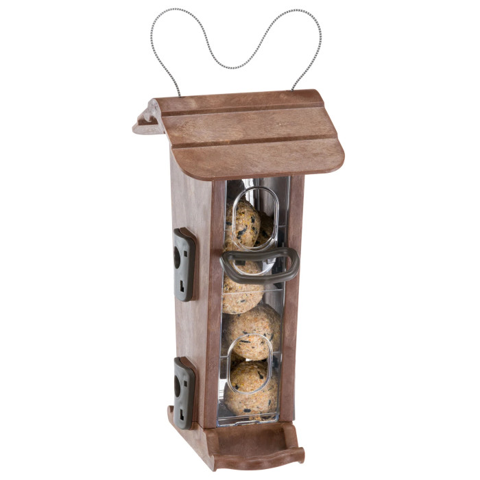 Внешняя кормушка крепкая, изготовлена ??из атмосферостойких, нетоксичных материалов, подлежащих переработке. Его легко чистить, он устойчив к паразитам, что гарантирует оптимальные гигиенические условия. В комплекте с шестом и шнуром для крепления к деревьям в вашем саду.