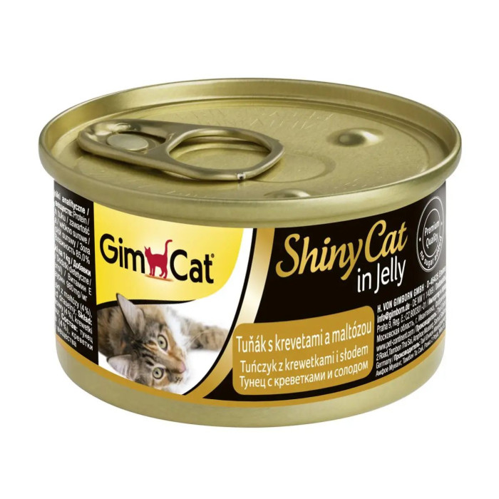 Деликатесный консервированный корм Shiny Cat k 70g тунец, креветки и мальт, обогащенный протеином, удовлетворит даже прихотливого пушистого любимца. Нежные сочные кусочки смачного тунца соединены с аппетитным соусом. При изготовлении корма используются только наилучшие сорта рыбы, и другие натуральные компоненты. В составе продукта содержатся: