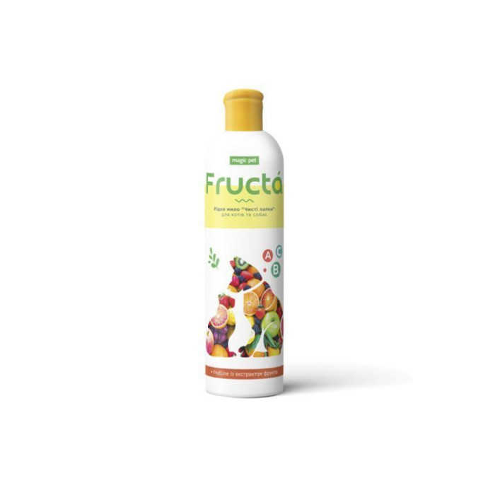 Жидкое мыло серии FruitLine для собак и кошек. Обеспечит бережный уход за кожей и лапами вашего любимца. Комбинация высокоэффективных поверхностно активных веществ, содержащих витамин С, фруктовые экстракты барбадосской вишни, ананаса, авокадо, апельсина и Аллантоин, нежно очищает, снимает раздражение, смягчает кожу подушечек лап, стимулирует регенерацию тканей и ускоряет заживление мелких царапин и ран